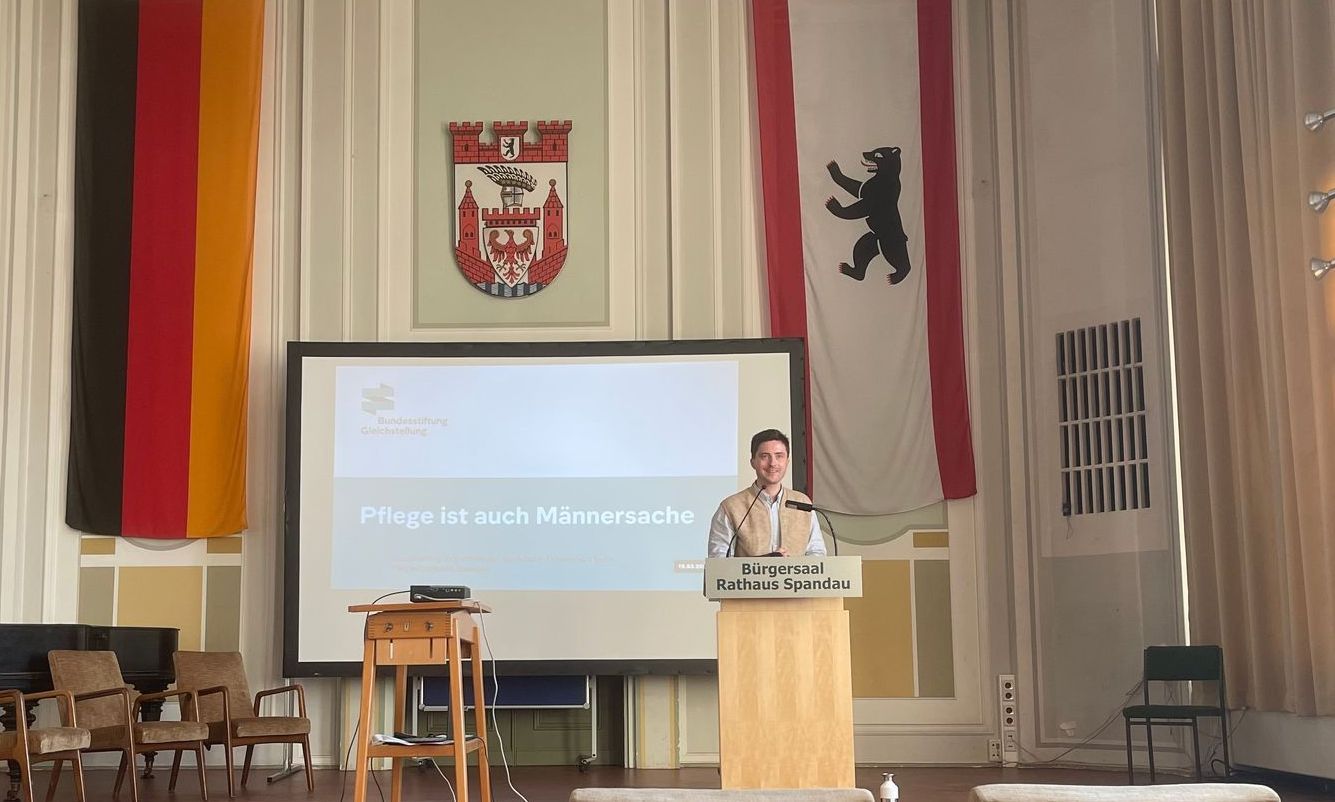Unter diesem Motto hatten die Pflegestützpunkte Berlin am 19. März ins Spandauer Rathaus eingeladen. Auch die Seniorenvertretung hatte einen Stand im Bürgersaal und informierte über ihre Aktivitäten. Es war eine informative Veranstaltung mit einem Vortrag der Stiftung Gleichstellung, einem Gespräch mit einem jungen und einem älteren Mann mit Pflegeerfahrung und einem Auftritt des Opern- Dolmus der Komischen Oper Berlin.