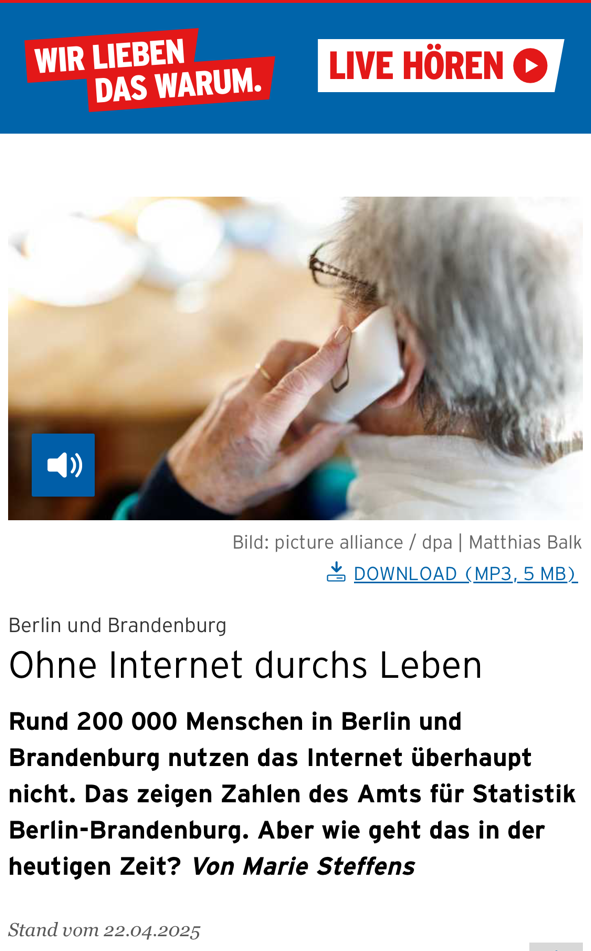 Ein vieldiskutiertes Thema unter Seniorinnen und Senioren ist die fortschreitende Digitalisierung im Alltag. Vom Bahnticket über den Arzttermin und das e-Rezept bis hin zu Bankgeschäften - Vieles lässt sich heutzutage bequem per Smartphone oder Tablet erledigen, wenn man sich damit auskennt. Das analoge Leben dagegen wird für Ältere ohne digitale Geräte oder Kenntnisse immer schwieriger.