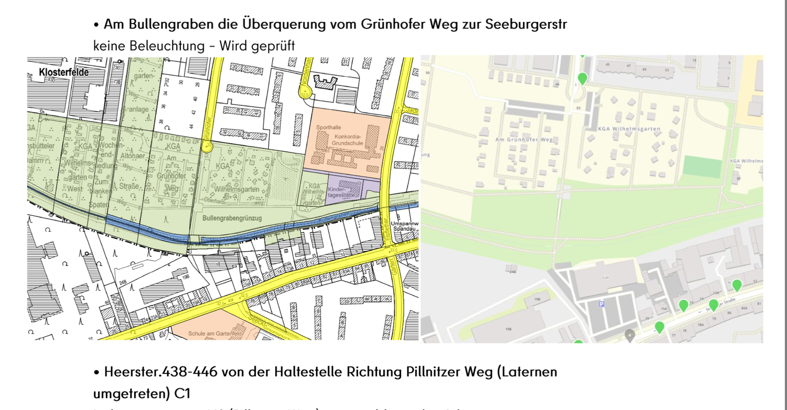 Folgende schlecht oder gar nicht beleuchtete Standorte auf unserer Wunschliste werden geprüft: