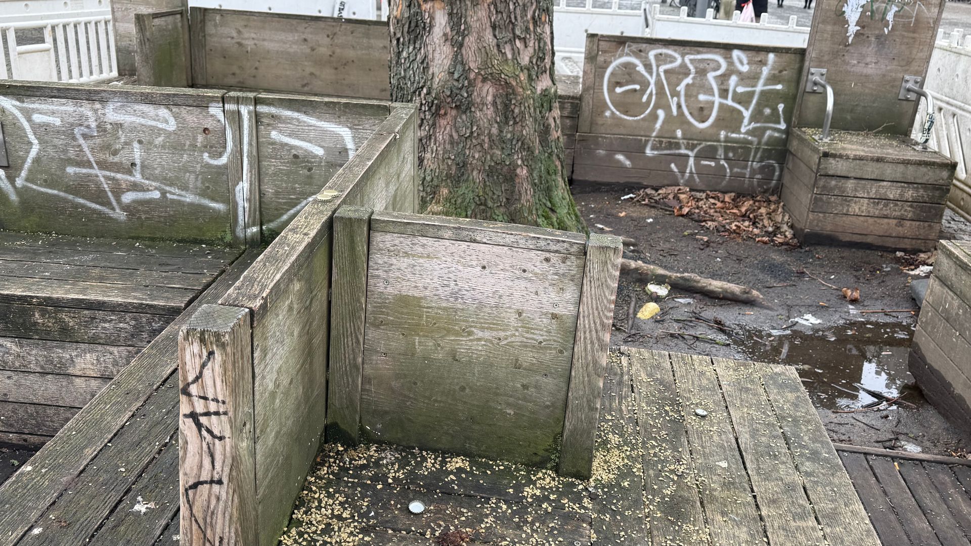 Kaputte Sitzbänke am Spandauer Markt werden ersetzt