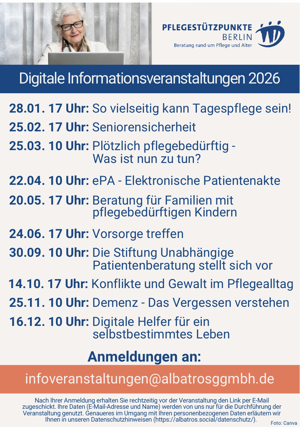 Online-Veranstaltungen der Pflegestützpunkte Berlin:
